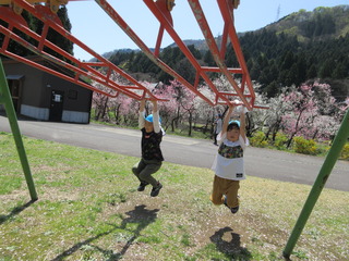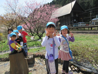 勝原花桃公園に行ってきました🌸天気も良く、花桃や桜もまだきれいに咲いていてみんないい笑顔でした。遊具でいっぱい遊び、越美北線も見れて大満足の子どもたちでした💗