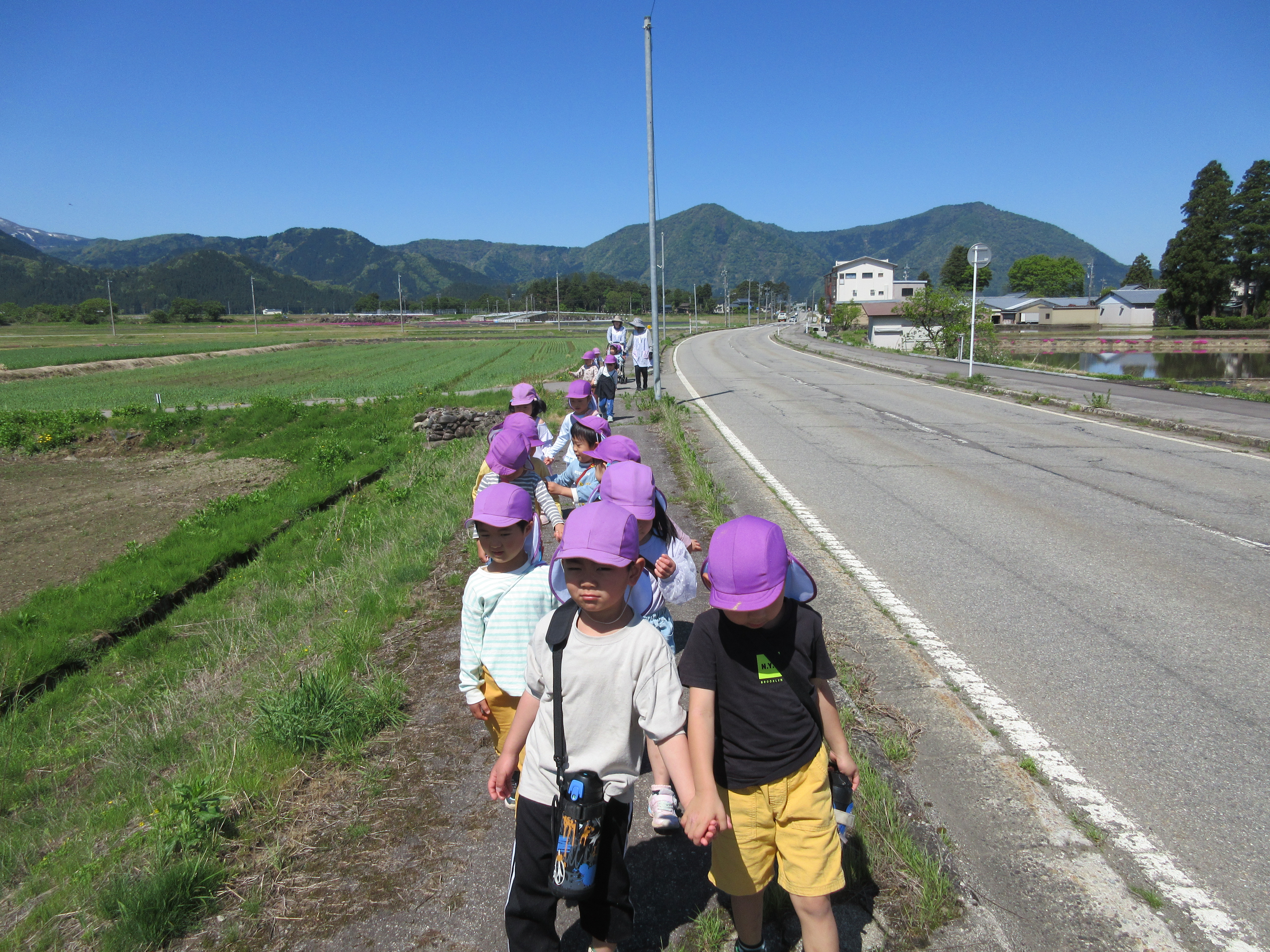 ぽかぽかとお日様が照り、心地良いそよ風が吹く中、西山方面にお散歩に出掛けました。子どもたちは「西山公園楽しみ♪」と期待を膨らましていました。ちょっぴり距離はありましたが、到着して遊具を見つけると喜んで遊び始めました!帰り道では「給食は何かな?」「スパゲッティやよ!」と会話を楽しみながら歩いていた子どもたちでした♪