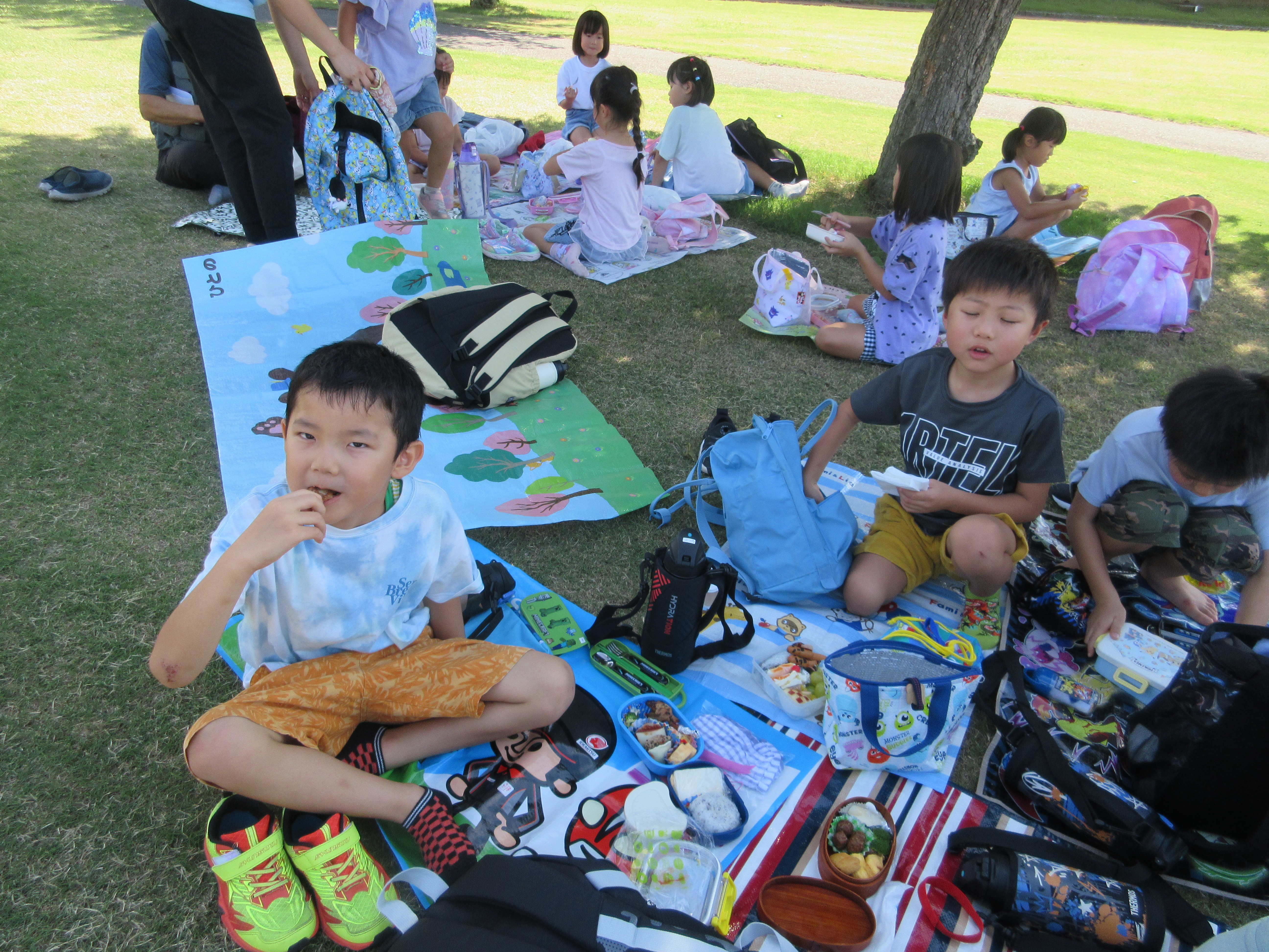 9月26日(金)は修園旅行で芝政に行ってきました。芝政に着くと色々な遊具があり、待ち切れない様子で目をキラキラさせて友だちと遊び始め、笑顔いっぱいの一日でした。天気も良く、青空の下でお弁当を食べることができ、「楽しかった~」と大満足の子ども達でした。おいしいお弁当を作って下さり、ありがとうございました。