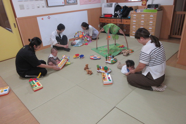 今月のころころ広場には3組の方が来てくださいました。もも組のお友だちと一緒に広場で遊んだり、お部屋でゆったりと楽しんだりしました。 また保護者の方々も、日頃の子育てのお話をしながら、アットホームな雰囲気の中で楽しいひと時を過ごすことが出来ました。