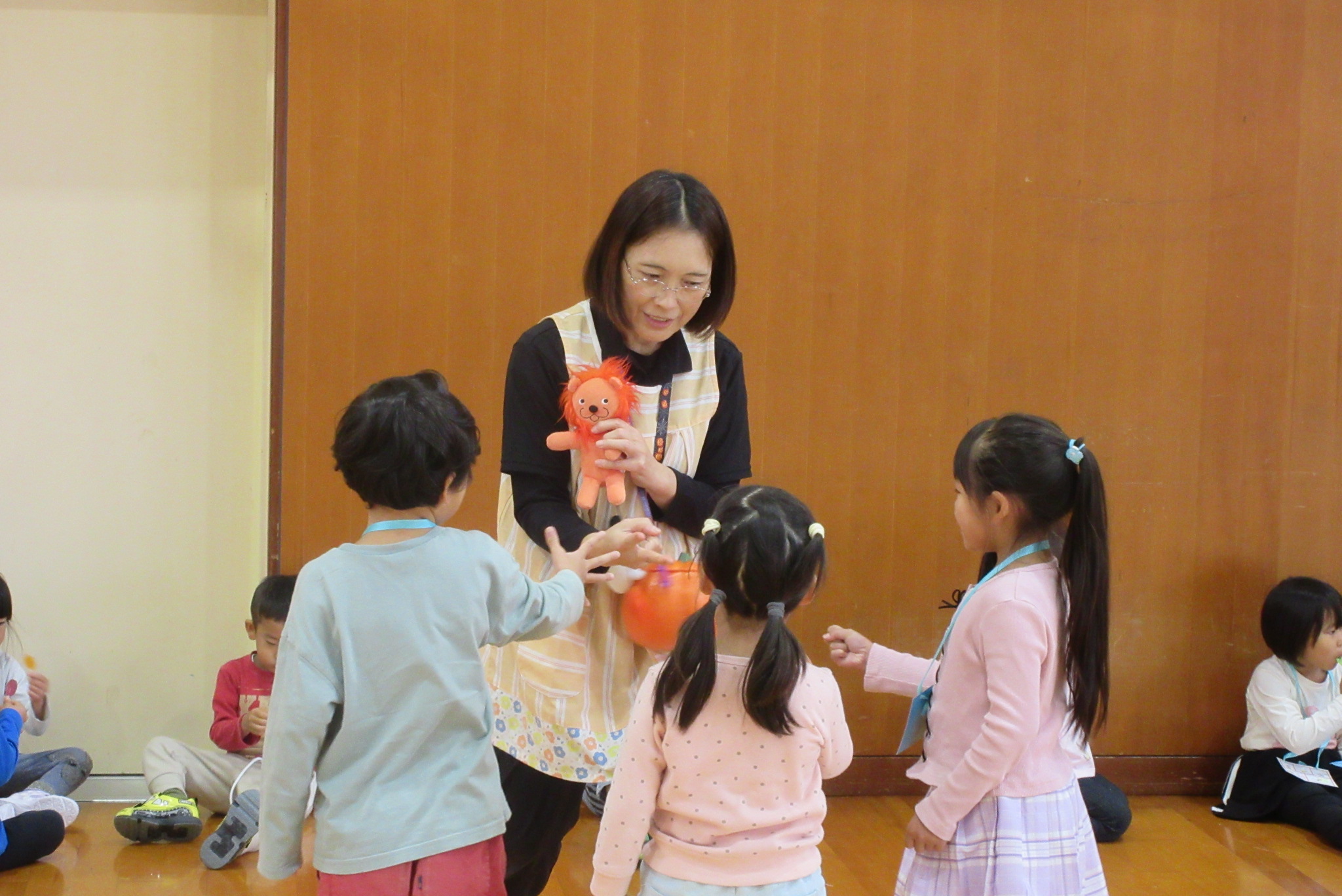 10月の誕生会がありました。今月は1名のお友だちで、みんなでいっぱいお祝いをしました。その後は、海洋センター内でのウォークラリー!色々なコーナーがあり、3,4,5歳児のなかよしペアでまわって楽しみました。