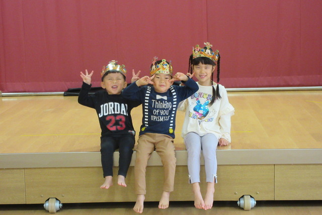 11月生まれのお友だちの、誕生会がありました。今月はステージの上で、3名の誕生児を紹介をし、みんなでお祝いしました!記念撮影はとびっきりの笑顔でポーズ!その後は人形劇を見て楽しみました^^。
