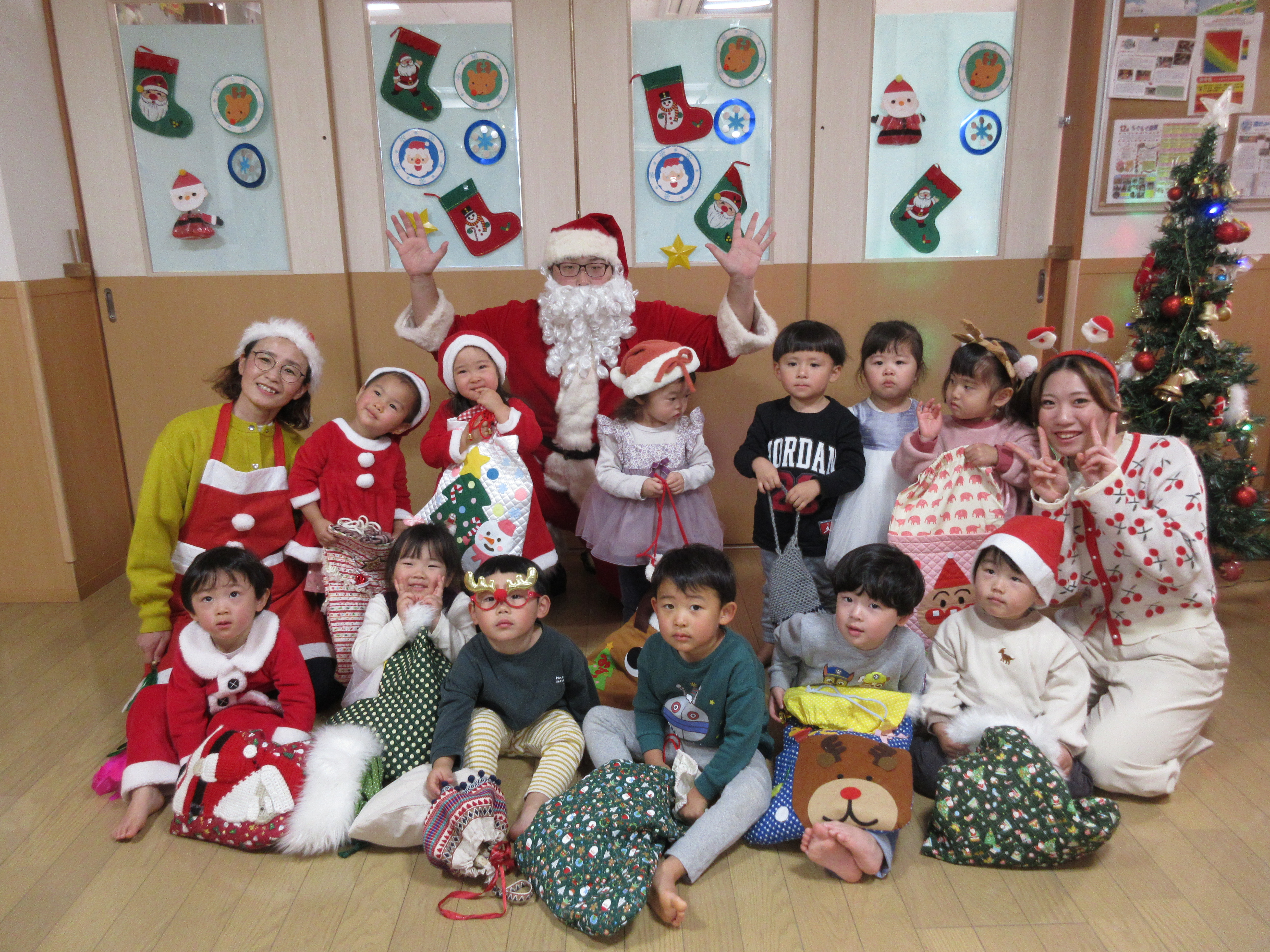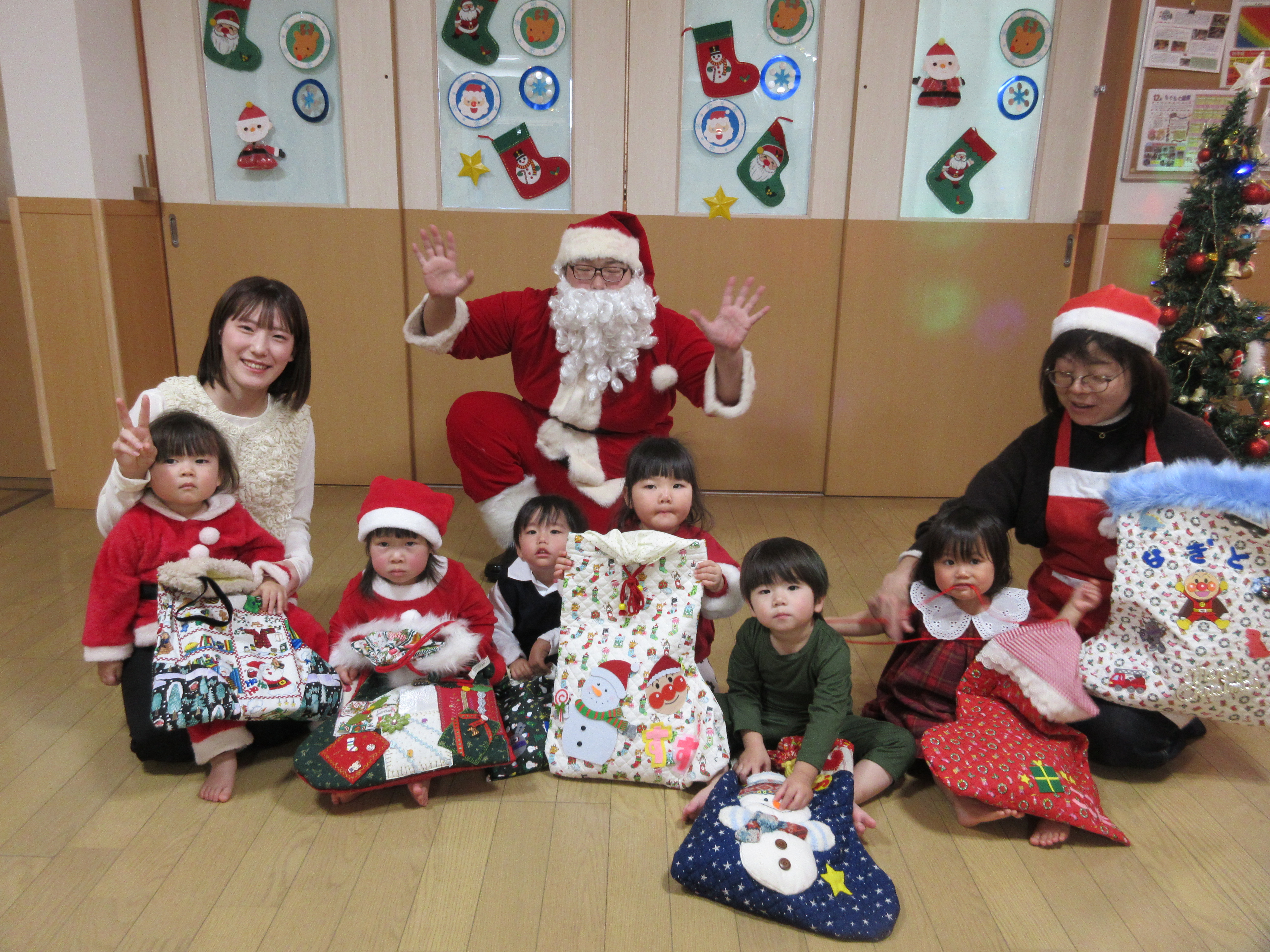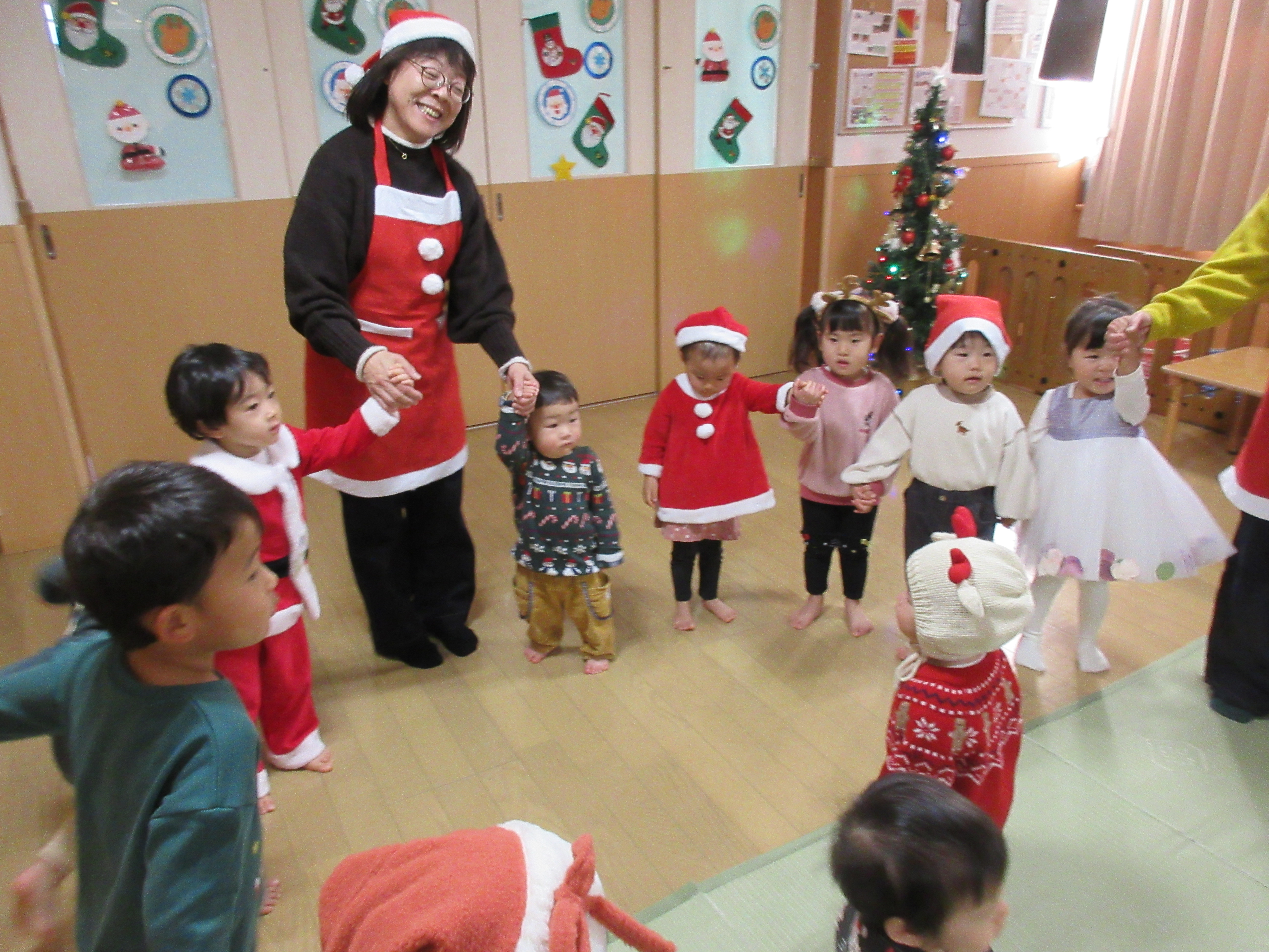 クリスマス会では大きなサンタさんに少しびっくりしてしまう子もいましたが、プレゼントを貰うとにっこり嬉しそうな子どもたちでした😊 いちご組はランチルームでのバイキングデビューをし、たくさんのメニューに目をキラキラさせる子がいたり、保育者と一緒におかわりに行ったりと、お腹いっぱいに食べてみんな満足そうでした♡ もも組さんもクリスマスの曲が流れる中、楽しい雰囲気で食べていました♪