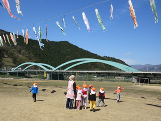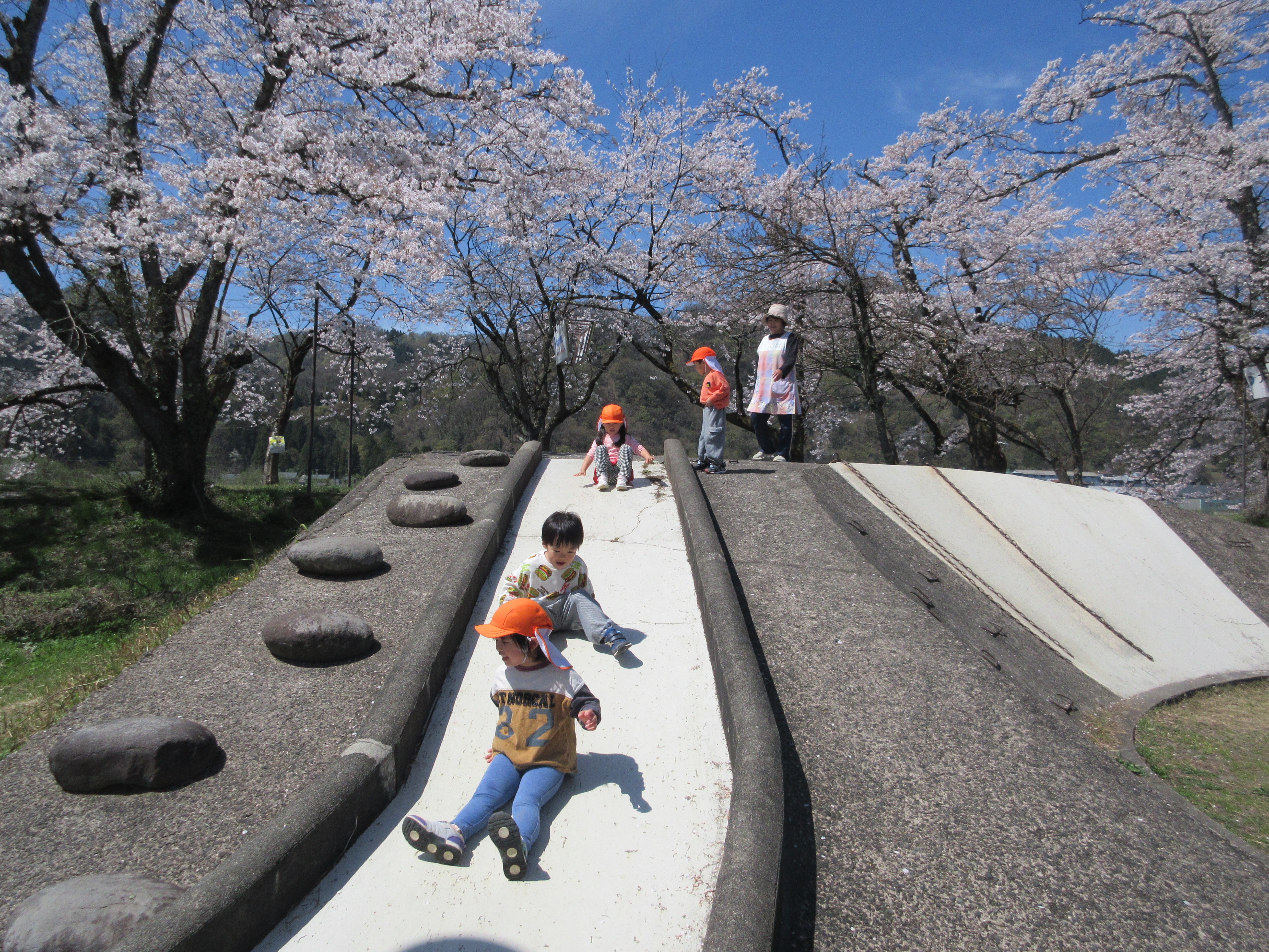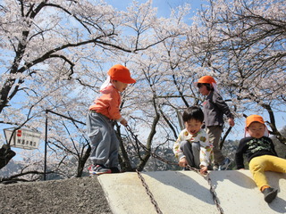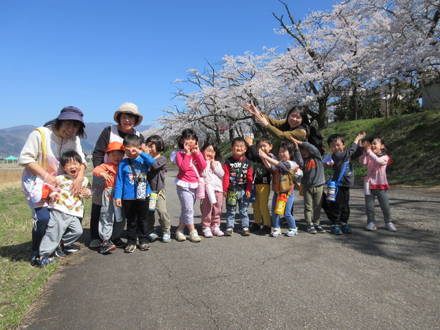 満開の弁天桜を見に行って来ました。今年初のお出かけとあって、バスの中は大盛り上がり🎵桜を見つけるたびに「あそこにあるよ」とみんなが教えてくれました。「こいのぼりを捕まえられるかな?」とジャンプしたり、桜の花びらが舞い散ると「桜の雨だ」と言ったり、子ども達の楽しそうな声が響き渡っていました。