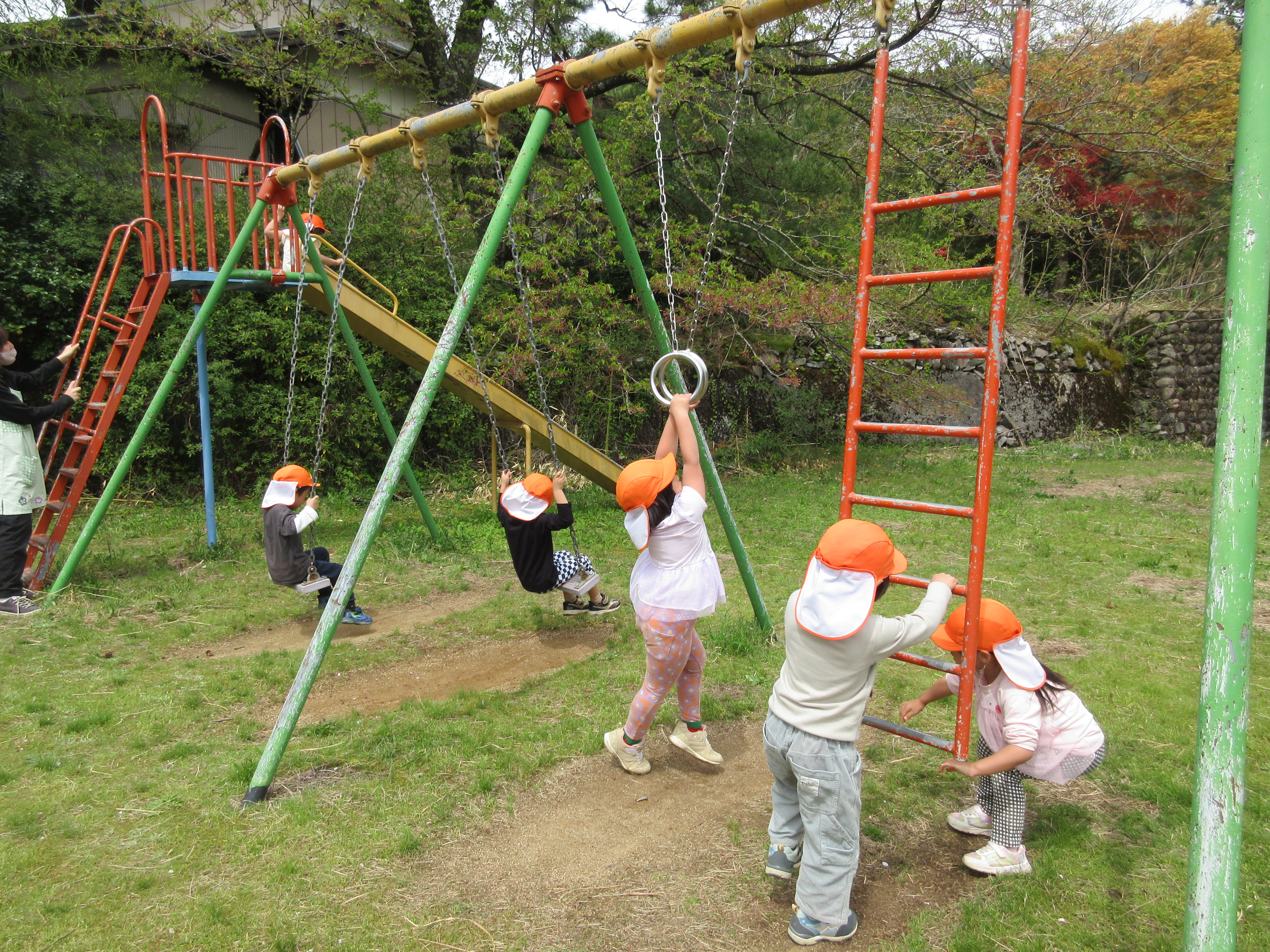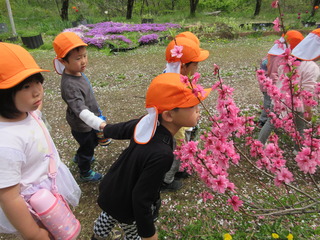 勝原にハナモモを見に行ってきました。ピンクや白の花の匂いは「いいにおい」の他に「カレーのにおい!」「納豆のにおい!」となぜか不思議な答えも(笑)遊具でもたくさん遊ぶことができて、楽しいお花見となりました。今日は越美北線が運休で残念でした💦