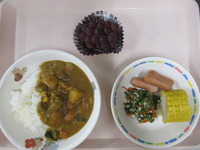 ウインナ- おくらのおかか和え ゆでとうもろこし 夏野菜カレ- ぶどう |