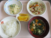 白身魚のクリ-ムコ-ン焼き にんじんのきんぴら 豚汁(夏バ-ジョン) ごはん 納豆 ぶどう |