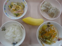 シューマイ 冷ばん三すう コンソメスープ ごはん バナナ |