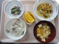 焼きそば 小松菜とひじきのごまマヨ和え かき玉汁 ゆかりごはん はっさく |