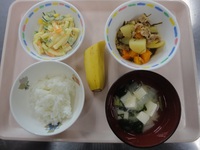 じゃが芋の昆布煮 マカロニサラダ みそ汁(えのき) ごはん バナナ |