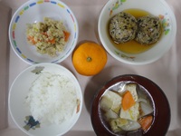 鶏つくねのあんかけ(ひじき) 卯の花 のっぺい汁 ごはん みかん |