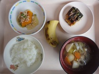 焼き鯖 かぼちゃのそぼろ煮 のっぺい汁 ごはん バナナ |