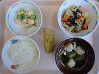 じゃが芋のひじき煮 ブロッコリーと卵のサラダ 麩のすまし汁 ごはん バナナ |
