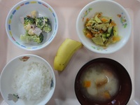 豚肉のカレー炒め ブロッコリーと卵のサラダ みそ汁(麩) ごはん バナナ |