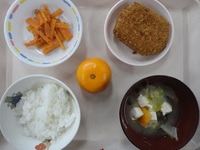 コロッケ ニンジンの和風サラダ みそ汁 ごはん みかん |