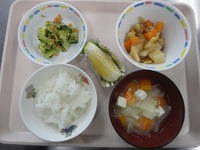 筑前煮 ブロッコリーとコーンのおかか和え みそ汁(白菜・玉ねぎ) ごはん グレープフルーツ |