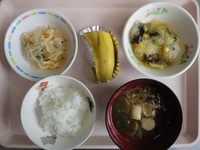 白身魚のカレーあんかけ 冷ばん三すう とろろ昆布汁 ごはん バナナ |