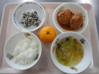 豆腐ハンバーグ ひじきサラダ コンソメスープ ごはん みかん |