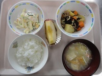 じゃが芋のひじき煮 マカロニサラダ みそ汁(厚揚げ) ごはん りんご |