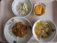 ドライカレー 白菜サラダ コンソメスープ 柿 |