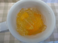 鶏肉とさつま芋の中華煮 きゃべつとコーンの中華和え ワンタンスープ ごはん オレンジ |