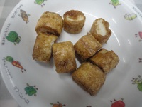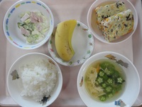 豆腐の五目焼き ハムサラダ オクラスープ ごはん バナナ |