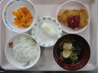 とんかつ にんじんの和風サラダ 麩のすまし汁 ごはん 梨 |