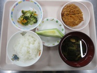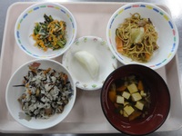 焼きそば 三色ナムル すまし汁 ひじきごはん 梨 |