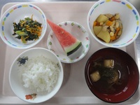 大豆の五目煮 小松菜とニンジンのごま和え とろろ昆布汁 ごはん すいか |