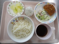コロッケ ハムサラダ 流しそうめん わかめおにぎり メロン |