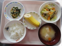 豚肉のカレー炒め ほうれん草の納豆和え みそ汁(じゃが芋、玉ねぎ) ごはん バナナ |