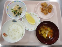 鶏肉の唐揚げ 切り干し大根のごま酢和え 白はんぺんのすまし汁 ごはん グレープフルーツ |