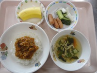ウインナー きゅうりと長芋のさっぱり漬け オクラスープ ドライカレー バナナ |