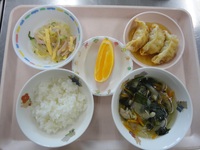 餃子のあんかけ 冷ばん三すう 中華風スープ ごはん オレンジ |