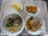 ビビンバ カボチャ煮 ワンタンスープ バナナ |