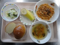 ナポリタン コールスローサラダ わかめスープ ロールパン りんご |