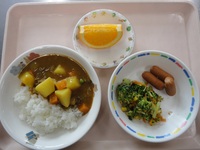 ウインナーソテー ブロッコリーとコーンのおかか和え カレーシチュー ごはん りんご |