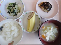 焼き鯖 キャベツとほうれん草の磯和え みそ汁(じゃが芋、玉ねぎ) ごはん バナナ |
