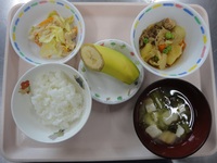 肉じゃが キャベツとツナのホットサラダ 勝山水菜のみそ汁 ごはん バナナ |