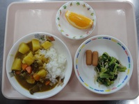 ウインナーソテー 小松菜ともやしのお浸し カレーシチュー ごはん いよかん |