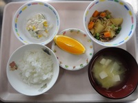 肉じゃが ツナサラダ みそ汁(わかめ) ごはん オレンジ |