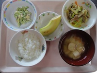 豚肉のカレー炒め ブロッコリーと卵のサラダ みそ汁(麩) ごはん バナナ |