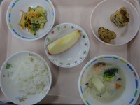 | 日付 | 午前のおやつ(未満児) | 給食 | 午後のおやつ(全園児) |