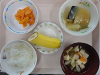 鯖の味噌煮 にんじんの和風サラダ けんちん汁 ごはん バナナ |