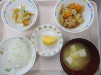筑前煮 キャベツの磯和え みそ汁(じゃが芋、玉ねぎ) ごはん 柿 |