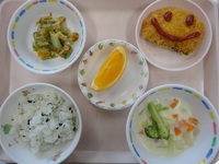 白身フライ キャベツのおかか和え クリームシチュー わかめごはん オレンジ |