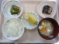 焼き鯖 青菜とコーンのごま和え 豚汁 ごはん バナナ |
