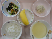 しゅうまい 小松菜とじゃこの和え物 さつま芋のポタージュ ごはん バナナ |