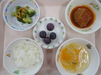 ハンバーグソース煮 ブロッコリーのおかか和え コンソメスープ ごはん ぶどう |