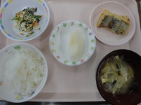 白身魚の西京焼き ほうれん草の白和え みそ汁(切り干し大根) ごはん 梨 |